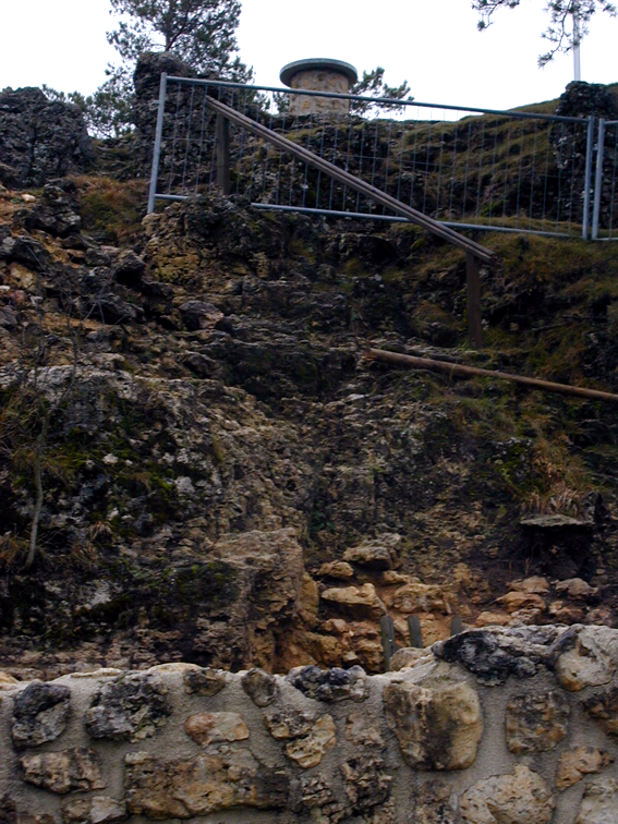 | Der neue Weg vom Wirtshaus nach oben (klick) - auf Initiative des Landrats Armin Nentwig mit Unterstützung der Rohrwerkseigentümerfamilie Aicher, der Betonbaufirma Godelmann, der Sparkasse Amberg-Sulzbach, der Gemeinde Birgland und der Gastwirtsfamilie Raum ausgebaut - war fertiggestellt (Bild unten), der Weg auf der Burg zum Aussichtsplateau hingegen zeitgleich versperrt worden (Bild oben). | |||||||||||||||||||||||||||||||||||||||||||||||||||||||||||||||||||||||||||||||||||||